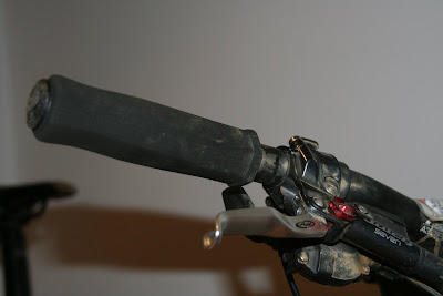 Os travões funcionaram bem, as manetes ao dar-lhes um toque para frente iam mesmo mais para a frente isso é normal?? Comparem nesta foto a manete do lado esquerdo está muito mais para a frente que a esquerda.Os punhos de espuma da Richey WCS, são bem melhores que os OnOff de origem.