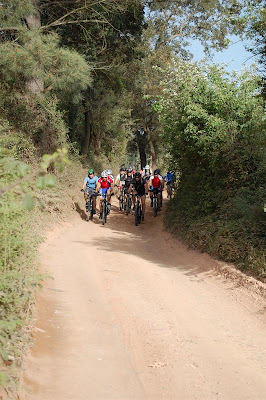 Agora sim já estava a ir em direcção a São Marinho do Porto. Mais um abastecimento, mais uma laranja um bolo e mais óleo no material. E mais??? uma subida claro, aquela lá no fundo do lado direito da baía, bem a subir.São Martinho em direcção à Nazaré, sem antes fazer a descida espectacular em direcção à Praia do Salgado. Desta vez grande parte ou com um pé no chão, ou mesmo desmontado.