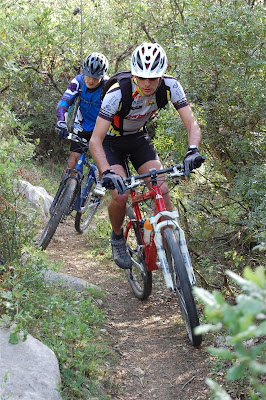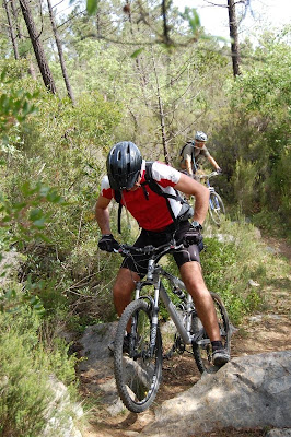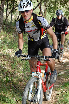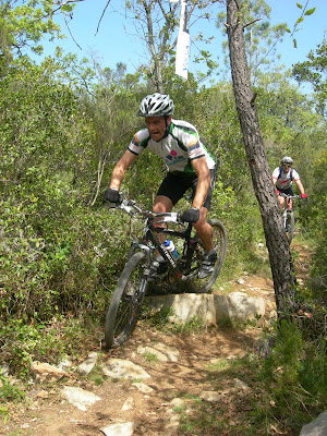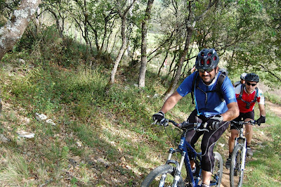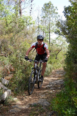 Quase todas as semanas tenho que ir até Lisboa e vou pela A8 e sempre que passo nesta zona imagino como seria interessante fazer aqueles trilhos ali mesmo ao lado da auto estrada. Esse dia foi ontem. Depois de já estar a andar um bocado neste estradão, pensei:"Boa vou passar por baixo da A8, finalmente vou em direcção a São Martinho!" - Mentira o caminho apenas passava por debaixo da A8 mas logo em cima, subi e tornei a virar para Este, para subir mais um trilho, desta vez a pé! Alcatrão, toca a bloquear a suspensão, à frente e atrás, sobe, curva, sobe, curva para trilho cheio de ramos e folhas de eucalipto, a subir claro.Finalmente a ponte, agora o desafio é a areia, pelo menos a chuva serviu para alguma coisa e não foi um grande obstáculo, mais uma passagem de estrada um elemento da organização esta lá com uma lata das grandes de WD40, o meu lubrificante favorito, toca a tratar da corrente e das mudanças.