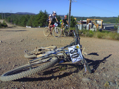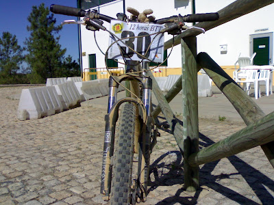 Ás 5,30 fiz o intervalo que estava previsto para as 6:00, corrente partida a 2 kms da meta, creio que nunca tinha partido uma corrente, era previsível, o sobe e desce constante obrigava a passar as mudanças de um lado aos outro, e aquela descida mais forte que terminava num regueiro e logo a subir a pique deu cabo do resto, pouco depois a corrente fez um barulho forte ainda pedalei para trás, podia ser a corrente a ficar entalada entre o quadro e os dentes, mas não, estava mesmo partida, corrente dentro do bolso pé a a caminho, pela primeira vez utilizei um elo rápido, nunca tinha utilizado, limpei a corrente com WD40 e lubrifiquei-a lavei as mãos com um papel húmido com cheiro a limão (vieram no saco das lembranças) comi o queque que tinha guardado para esta altura, foi uma prenda que dei a mim mesmo, deu para acalmar o estômago. Lavei os óculos e passei a ver o percurso bastante melhor pelo menos durante mais umas duas voltas. Fui ver as classificações estava em 13ª e o António Girão estava na 3ª posição!