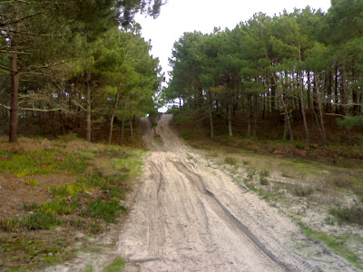 Ia para dizer corrida de montanha, termo utilizado em Portugal para Trail-Running, mas hoje foi mais corrida de areia. A ideia inicial era ir da Marinha Grande até São Pedro de Moel, pelos trilhos e aceiros, mas só me despachei ás 16:30, portanto fui direito a São Pedro mas de carro. Queria fazer um treino de 2 horas, com o Camelbak com água e mantimentos. Um pouco para testar as várias opções para a Trilhos do Pastorno final de Março e encontrar mais subidas e descidas para ir me ir habituando a andar por "maus caminhos". MP3 (só uso a correr e baixinho) com um set de um amigo Mahonkey "08 Mix 4" e toca a correr, em direcção do parque de campismo da Orbitur. Logo a seguir entro no primeiro trilho.O musgo é sinal de que aqui não à poluição. Virei para São Pedro. Para logo a seguir subir ao Ponto Novo. Posto de vigia do Pinhal de Leiria. Nos meus tempos de BTT à mais de 17 anos atrás, cheguei a descer por um trilho que havia lá em cima que ia até à estrada da Ponte Nova. O trilho ainda lá estava e deu para descer gostei mesmo de o descer, ainda fiz este vídeo.