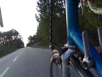 Estava-me a sentir relativamente bem, apesar de ao fim da tarde ter tido caimbras, comi bem e lá me fui aguentando. Ainda estou para perceber porque razão não continuei, ás vezes o corpo não deixa mas a cabeça empurra, outras vezes é o corpo que ir mas a cabeça não deixa...Para me redimir deste facto, ontem saí para ir almoçar a uma pizzaria local, a uns 4 kms de casa mas estava fechada. Acabei por ir ao Mac Donalds na Marinha Grande, fiz 35 kms na minha "nova" bicicleta de estrada, sem lycra, sem almofadinha no rabo e com a ganga a apertar as pernas! O pior de tudo é que as pernas e o rabo, não se queixaram... Nem me posso desculpar com o cansaço.