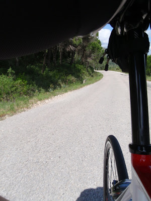 Mas até à verdadeira meta ainda falta pedalar mais um pouco, com menos inclinação mas sempre a curvar e a subir.
