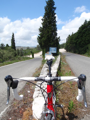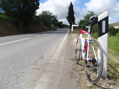 A meio da tarde, a fita de um dos punhos começa a cair, como ainda tenho as garrafas com a bebida energética, espero até as acabar de beber, para ir até ao carro. Entretanto, é o pneu de trás que está a ficar vazio, paro para dar mais ar, a baixa pressão até sabe bem quando passo nas zonas mais irregulares.