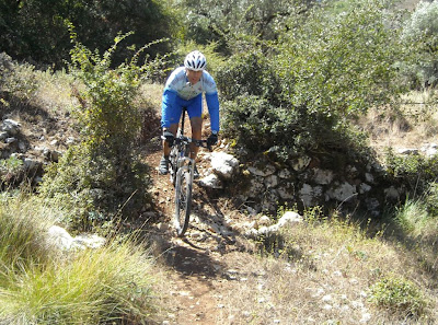 Single track houve poucos, mas bons, este foi um muito curto mas todo feito em cima de pedra. Umas duas horas depois do inicio da volta, as pilhas do GPS resolveram fazer greve. Como a máquina fotográfica que levava emprestada (obrigado mamã) tinha o mesmo tipo de pilhas lá as trocamos, menos mal, podíamos seguir viagem. O mal foi mesmo do António, pois muitas vezes dizia-lhe que tínhamos que parar para ele tirar fotos!!!