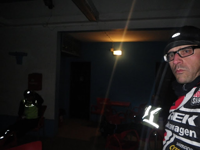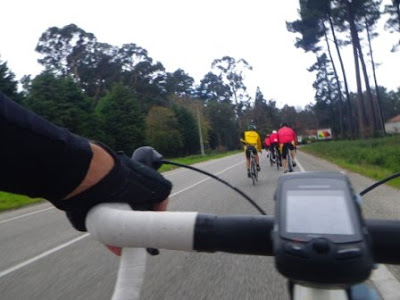 O frio de rachar, os quilómetros em cima do corpo e uma noite sem dormir, fez com que a montar na bicicleta, eu tenha caído para o lado. Só depois, lembrei-me que para arrancar numa subida, é melhor fazê-lo no sentido da descida ou pelo menos com uma mudança mais leve... Uma mão inchada, nada mais.