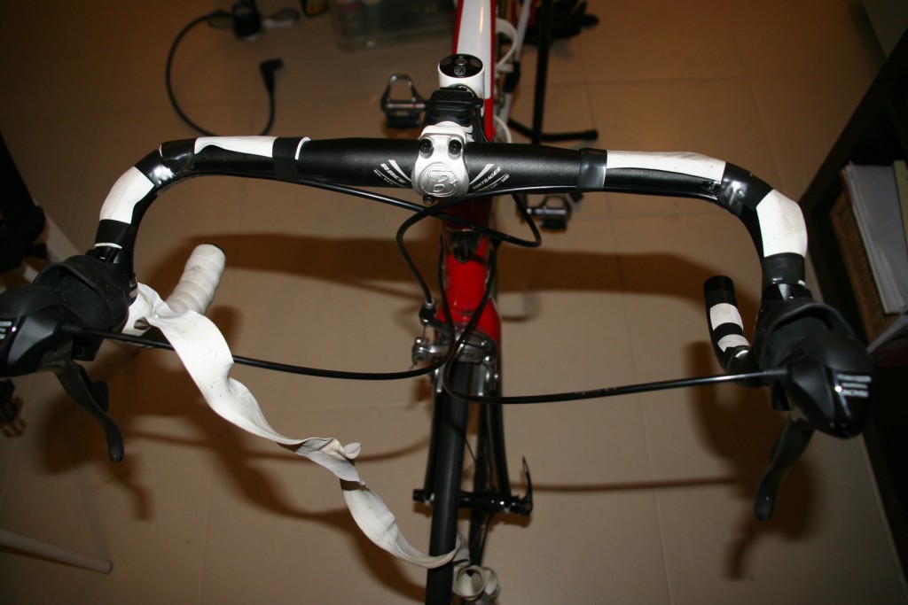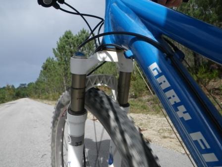 A minha montada. O reflector foi um improviso, mas funcionou. As rodas Bontrager RXL, cujos os cubos são na verdade da DTSwiss, portaram-se brilhantemente bem. Só com este melhoramento, a bicicleta ficou outra, super leves, com muito menos inércia.